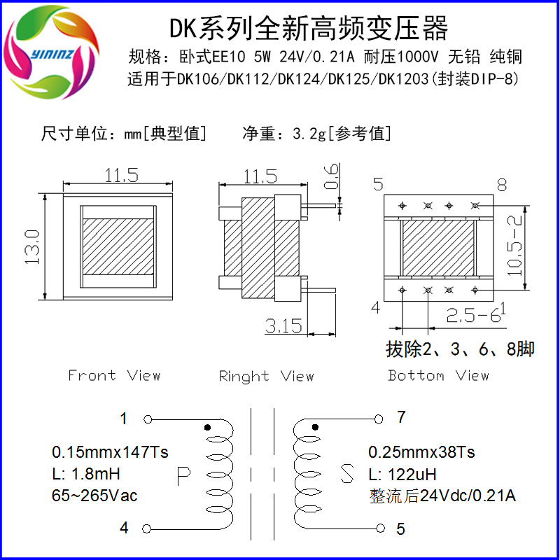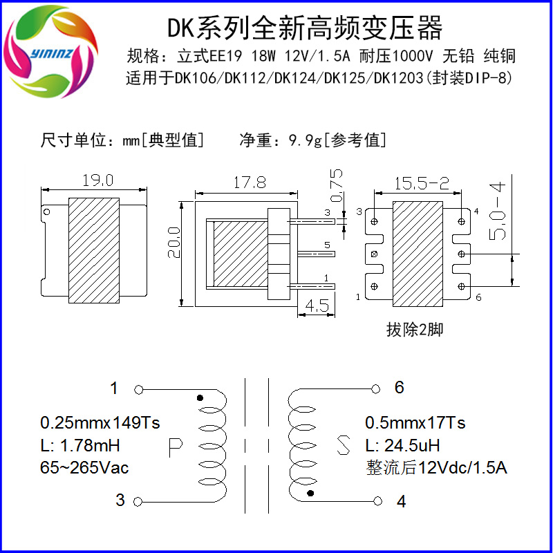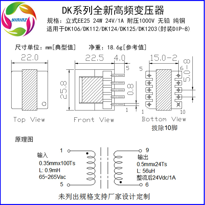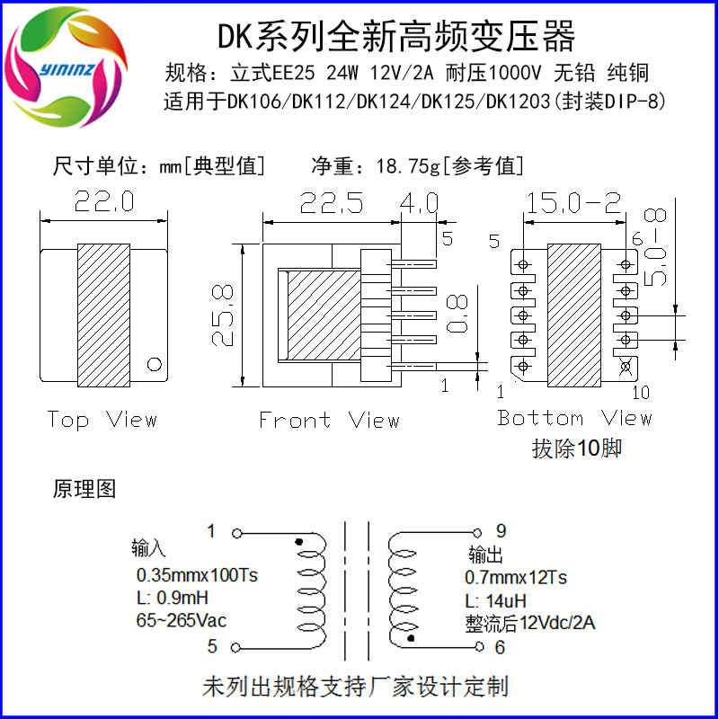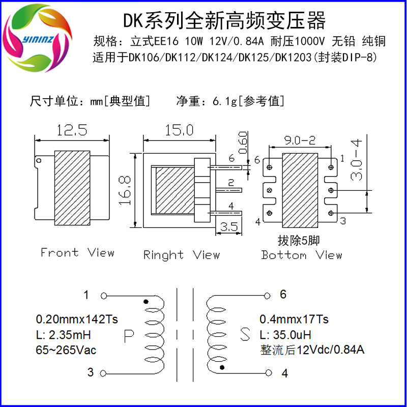 High-frequency transformers 5~50W suitable for Dongke DK106/DK112/DK124/DK125/DK1203 transformers