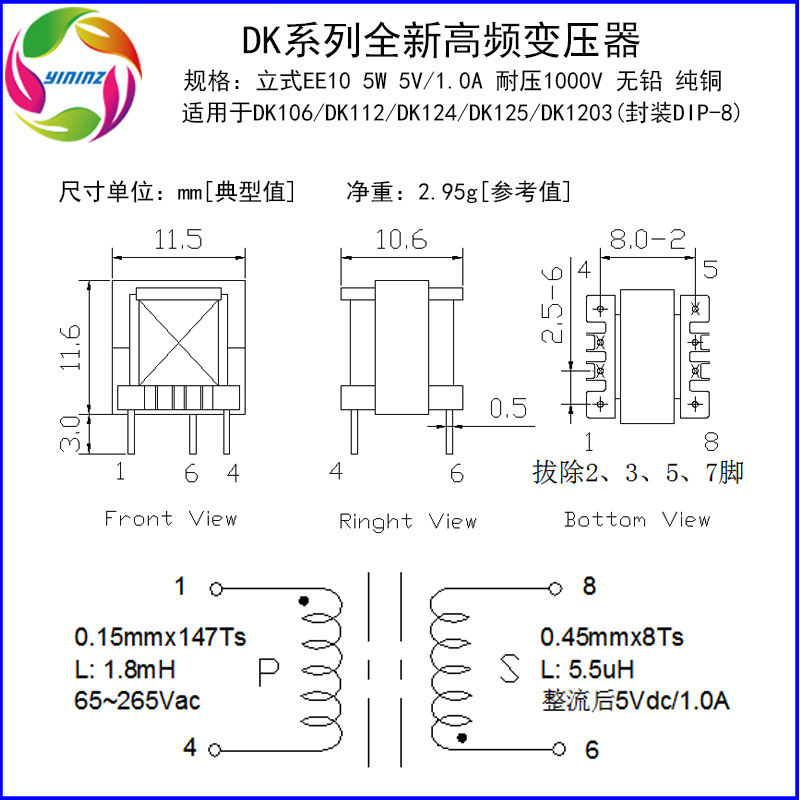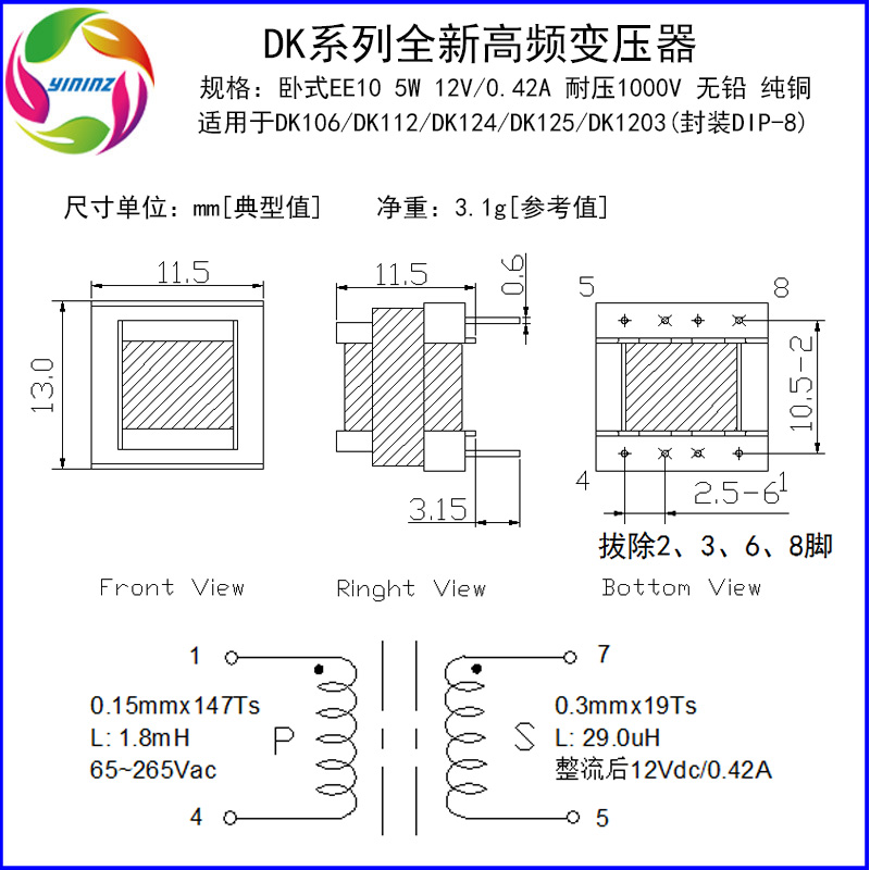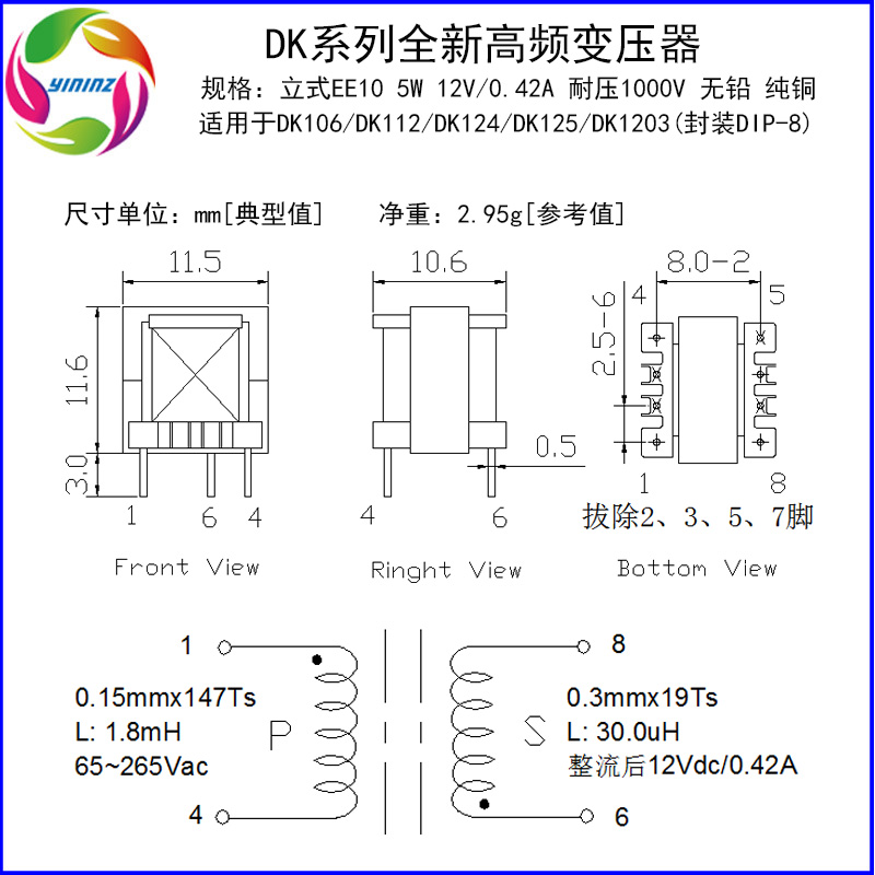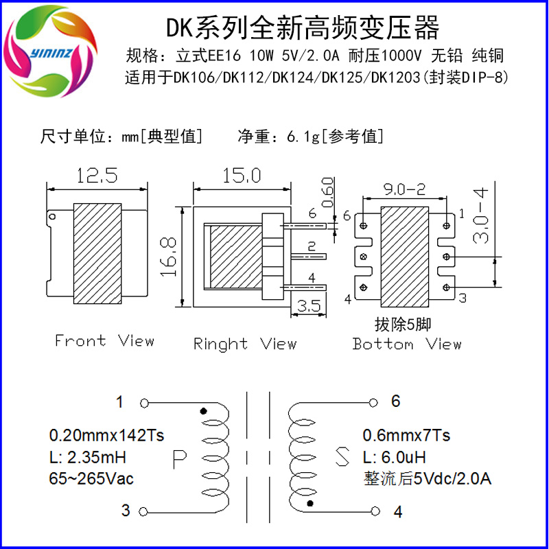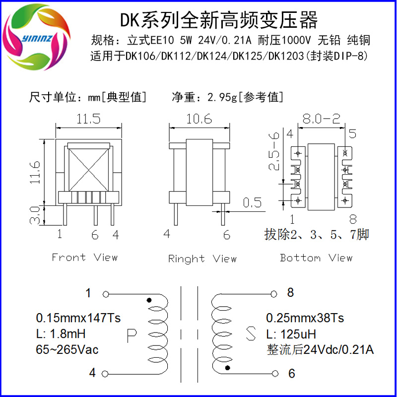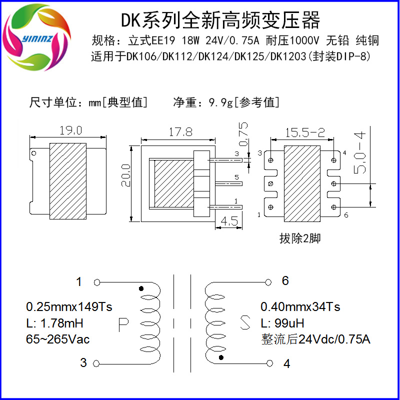 High-frequency transformers 5~50W suitable for Dongke DK106/DK112/DK124/DK125/DK1203 transformers